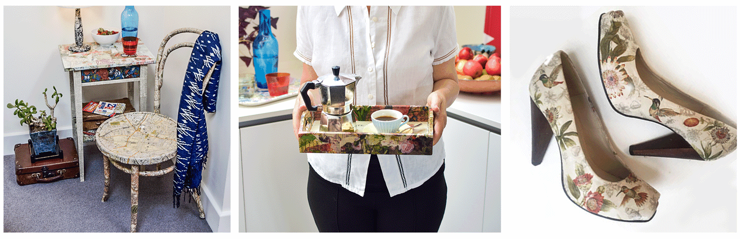 Transform everyday items through the art of decoupage—a creative upcycling technique that turns ordinary trays, boxes, frames, plant pots, shoes, and even furniture into unique, eco-friendly pieces.